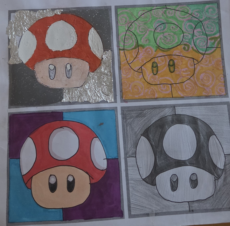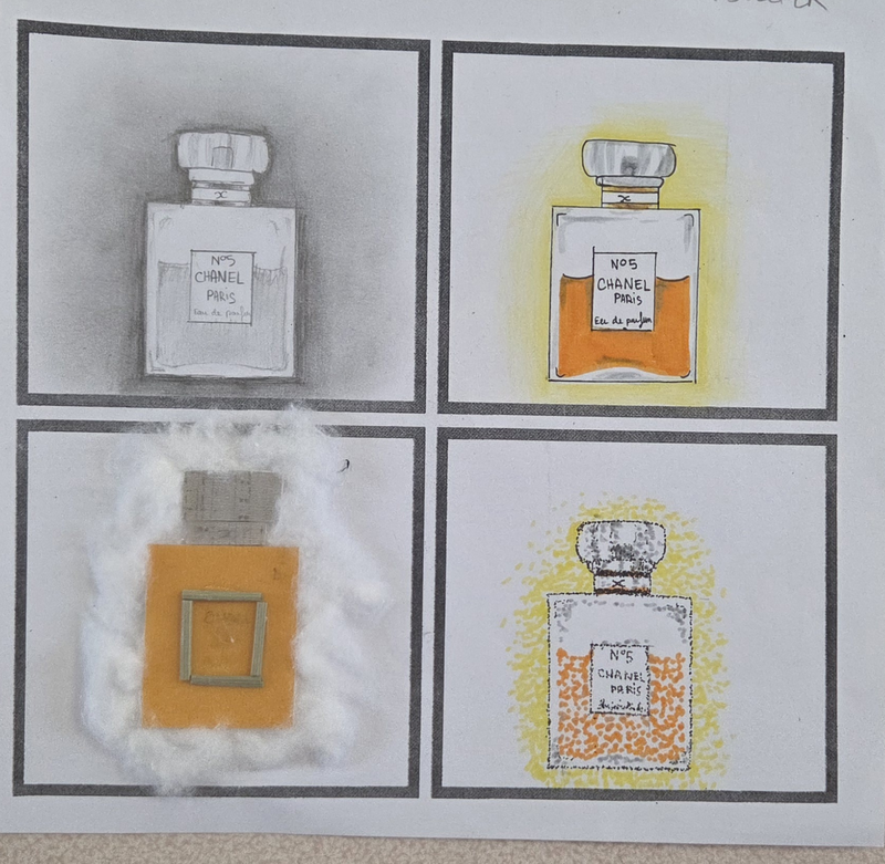 4images identiques (par le dessin) mais différentes (techniques, matières...)