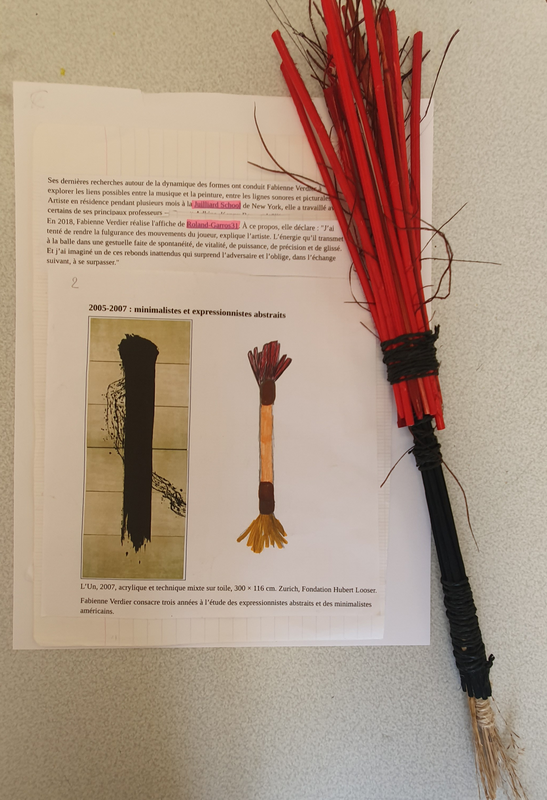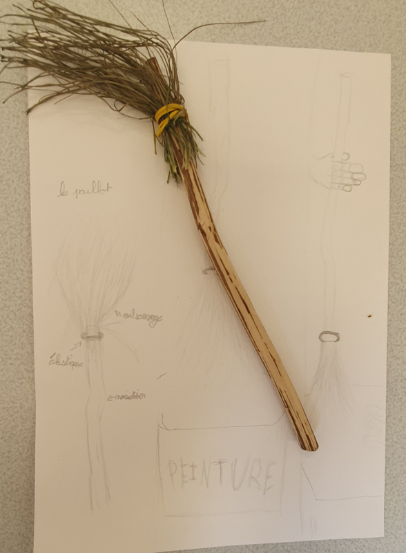 Fabrication d'outils, d'objets pour peindre. Par assemblage de divers matériaux de récupération.