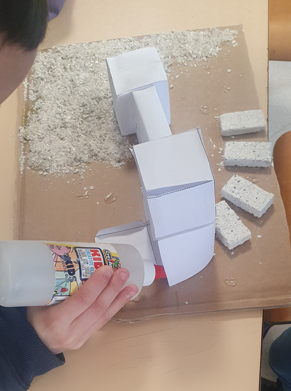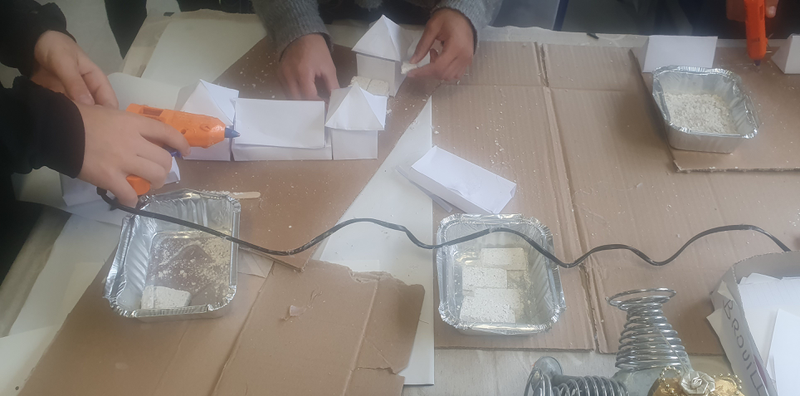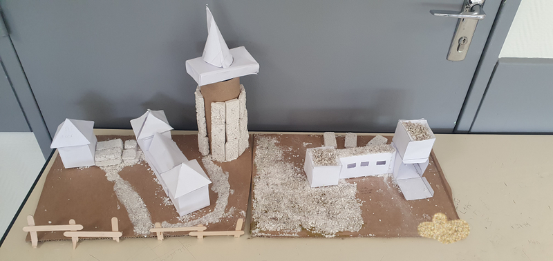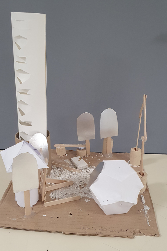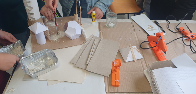 à plusieurs ateliers, fabriqué des briquettes en coquilles d'huîtres. Ils ont été sensibilisés aux matériaux recyclables. Bravo à eux pour ces belles créations architecturales, utilisant les briquettes en coquilles d'huîtres.