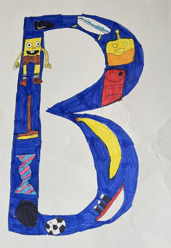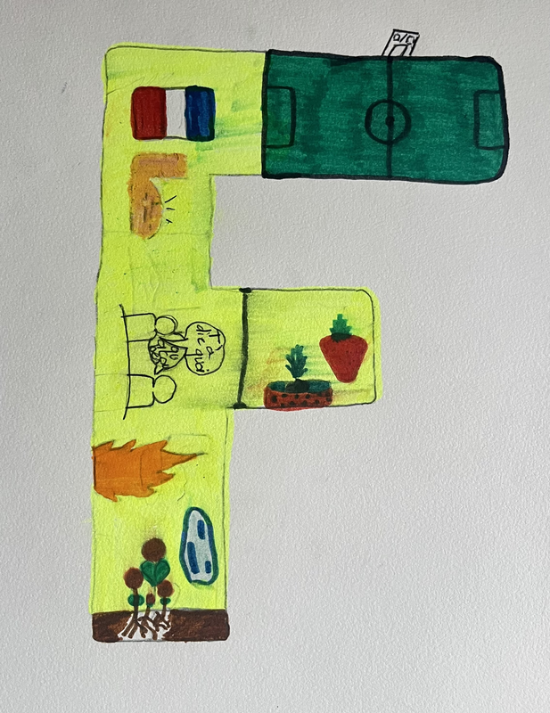 Orner une lettre de votre choix avec au moins 6 dessins qui commencent par la même lettre.