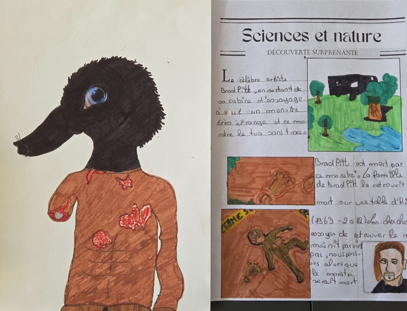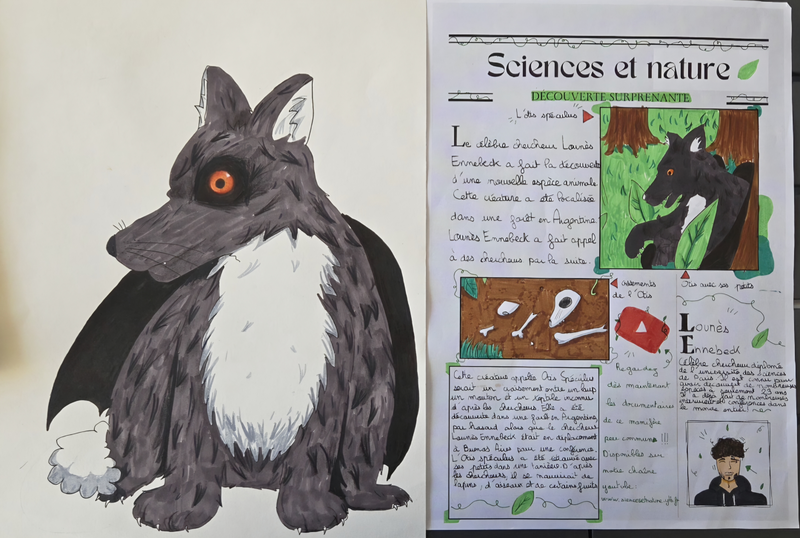 Puis réalisez la Une d’un journal, qui mettra en avant la découverte et la description de cette créature. On doit y croire ( travail sur les fake news).