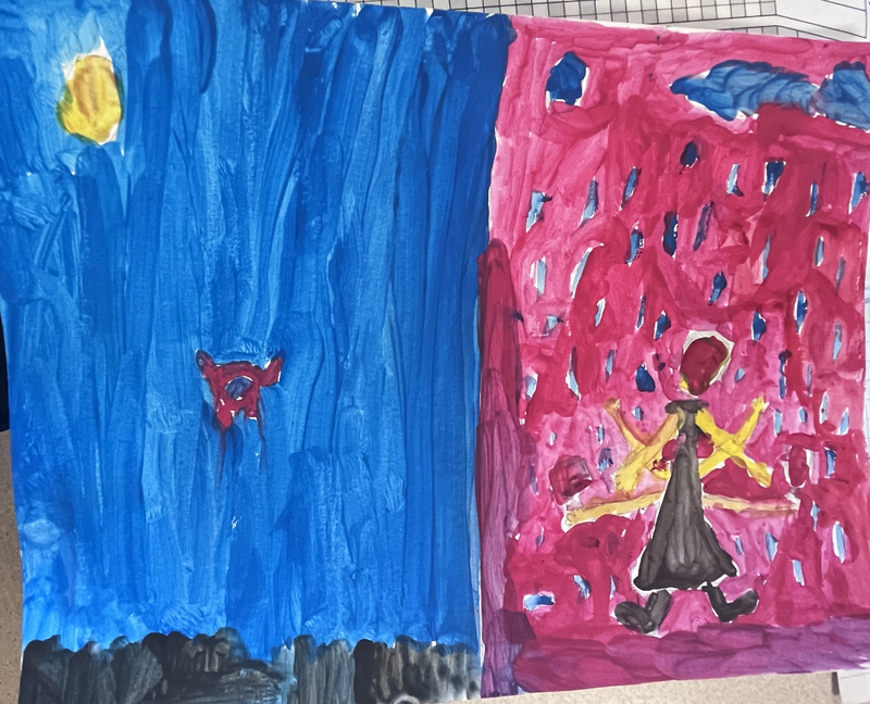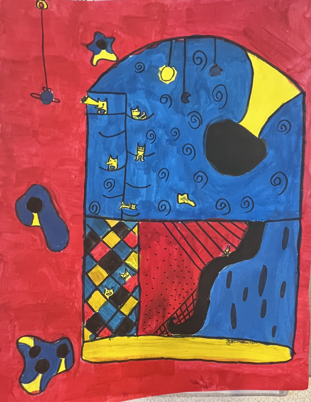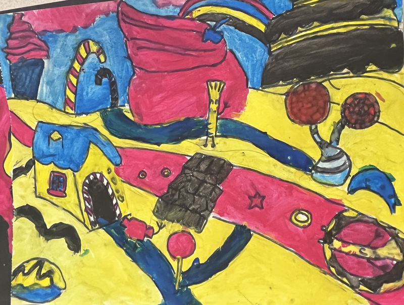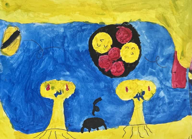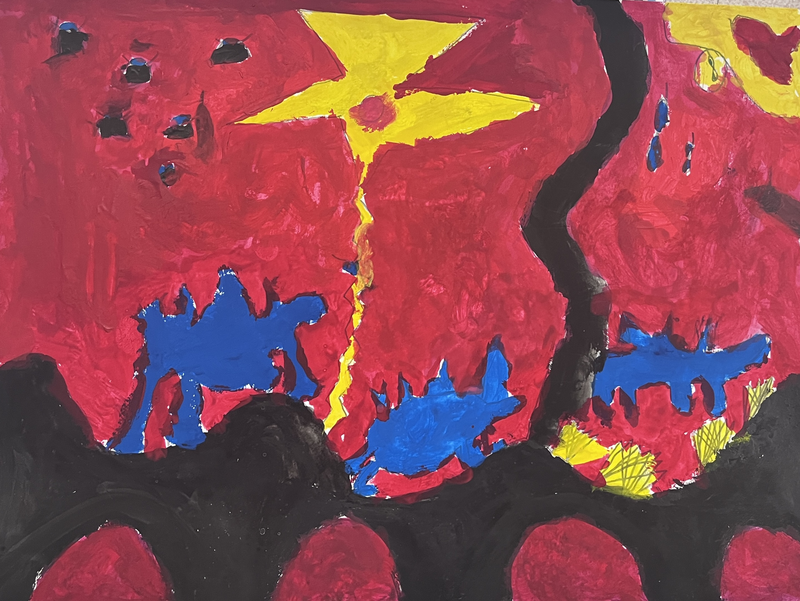 Cours sur la couleur. Puis inventez un monde imaginaire en utilisant les 3 couleurs primaires et le noir, à la gouache.