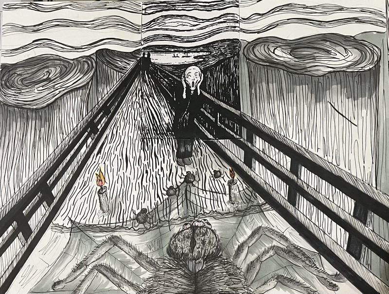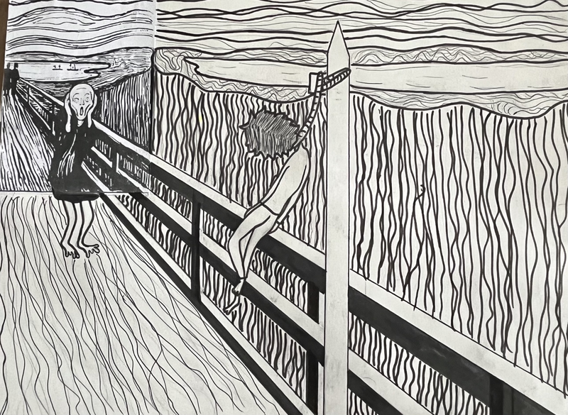 Prolonger le document donné ( Le cri D’E. munch) et faites intervenir un ou des éléments extérieurs pour expliquer le cri!