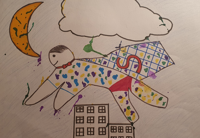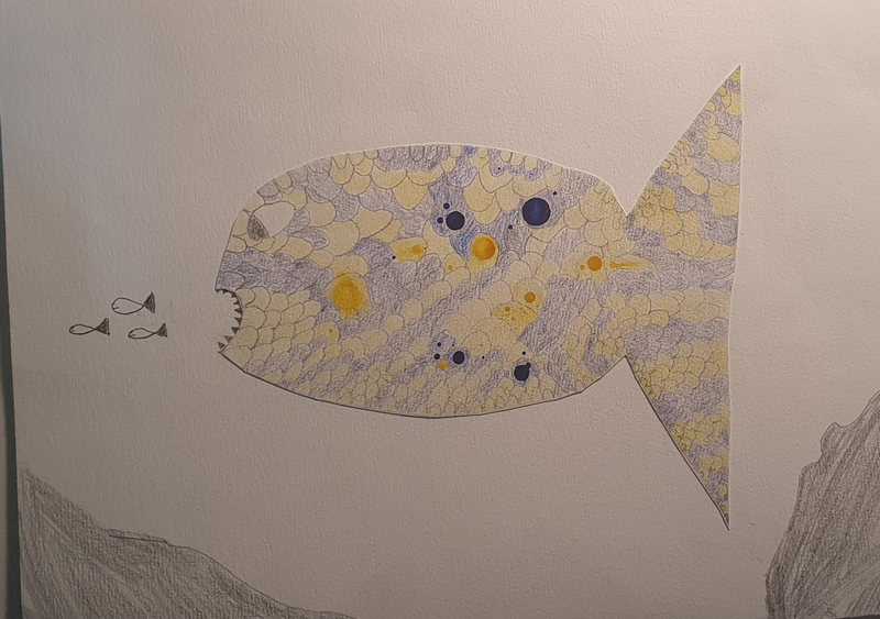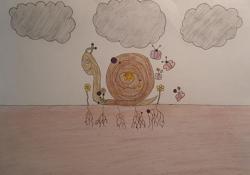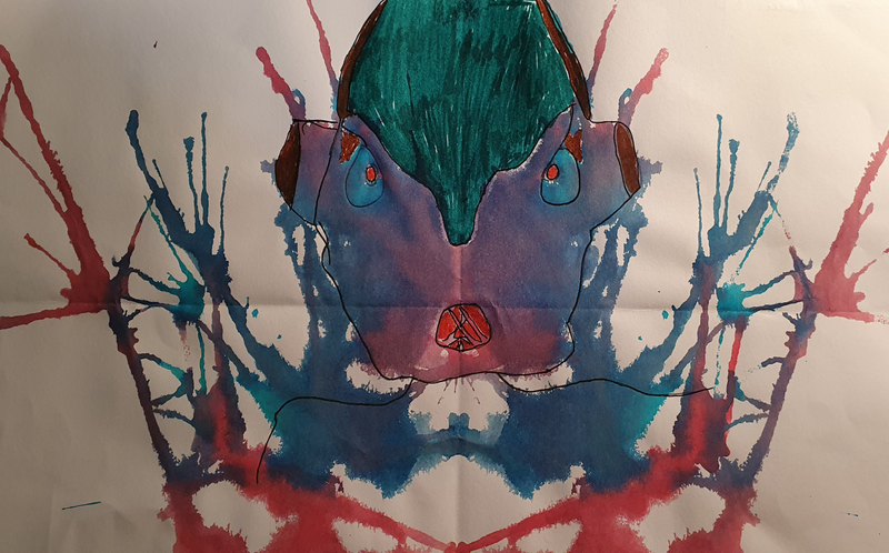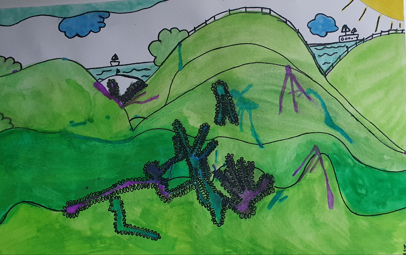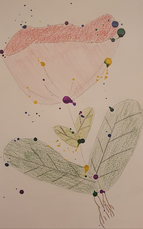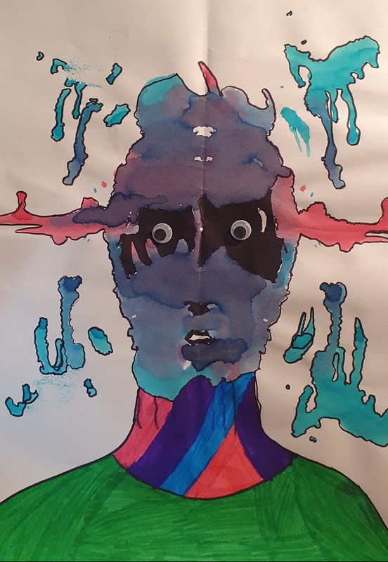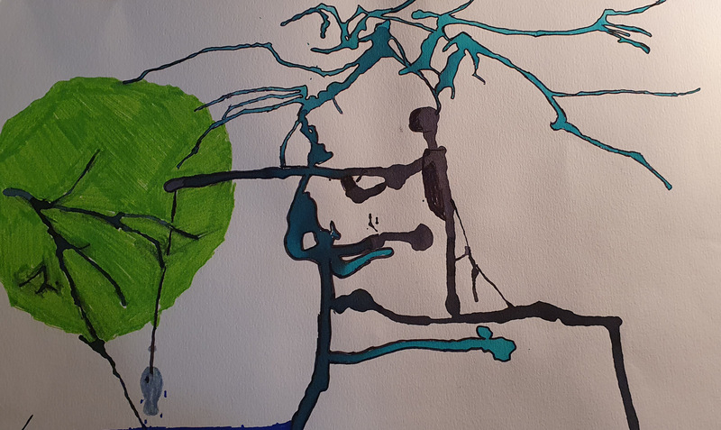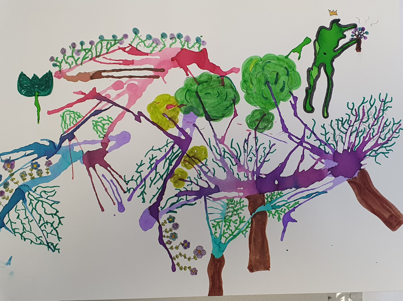A partir de tâches d'encres colorées tombées sur la feuille, les élèves devaient les utiliser dans une composition de leur choix.