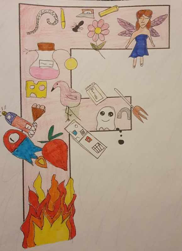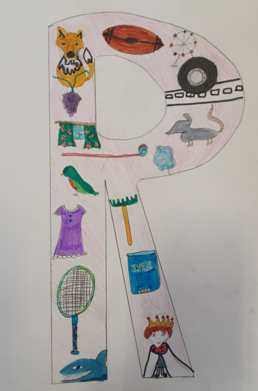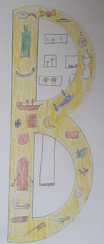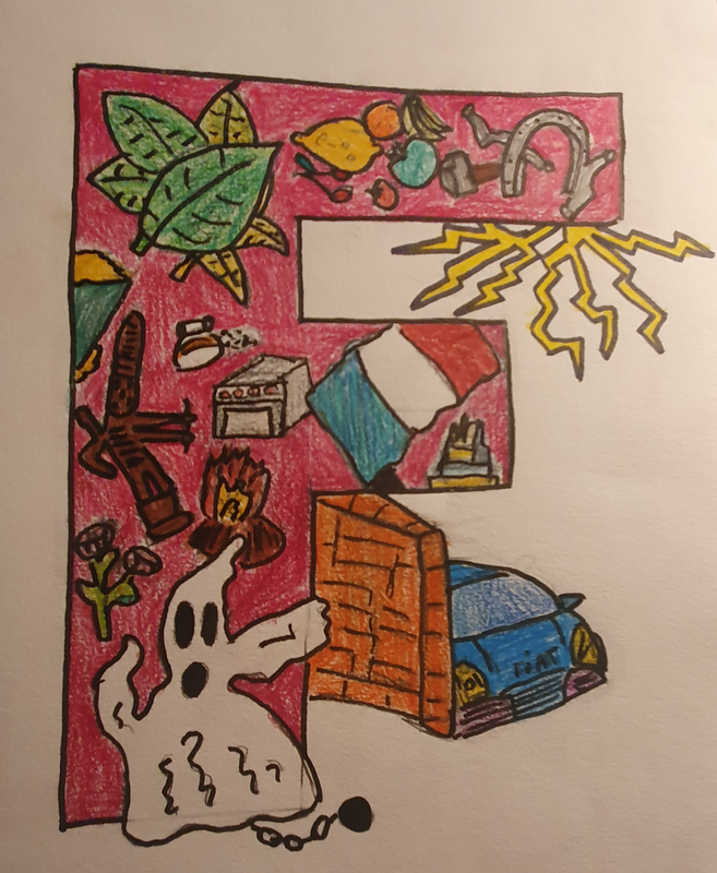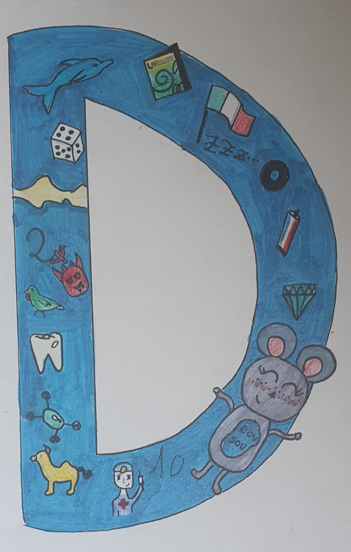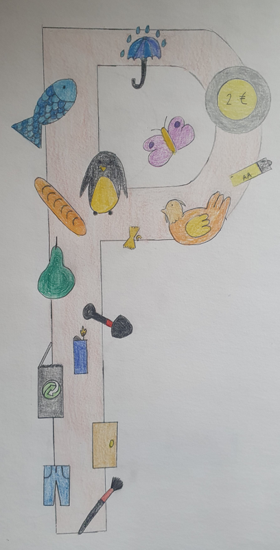 Illustrer Une lettre avec minum 6 images/dessins commençant par cette lettre.